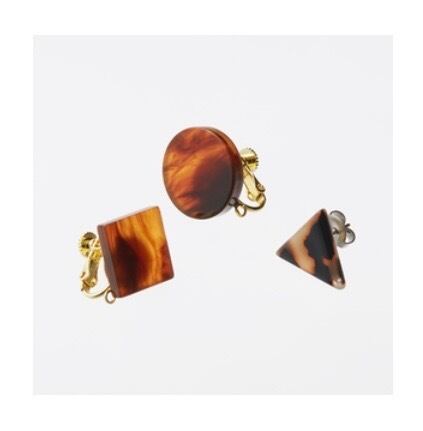 写真の3枚目から5枚目が、しべっ甲柄スクエアアクリルパーツ付きイヤリングベースです。べっ甲柄のアクリルパーツを使ったイヤリングベースです。※べっ甲の模様はそれぞれに違いがございますので予めご了承ください。